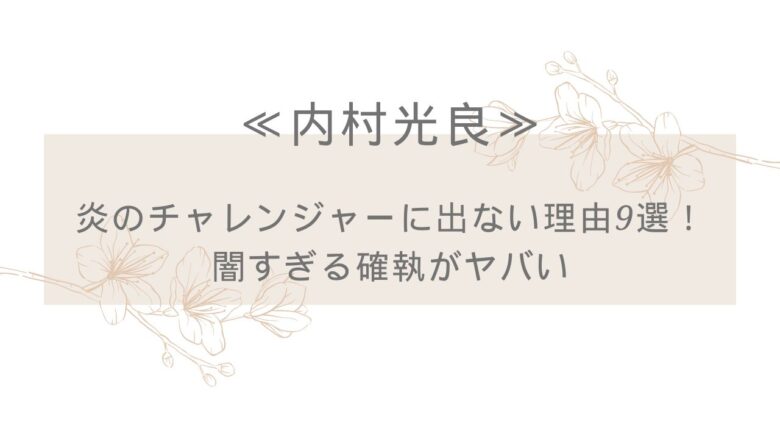 といった、『炎のチャレンジャー』に内村光良さんが出演しない理由ではないでしょうか?