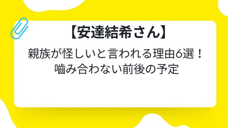 安達結希の親族が怪しいと言われる理由5選!嚙み合わない前後の予定|まとめ