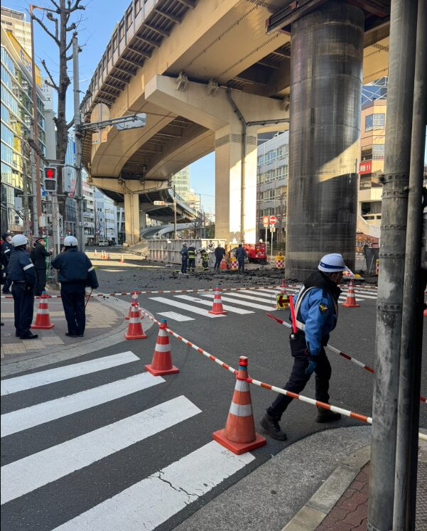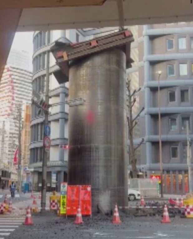 2026年3月11日、大阪梅田の新御堂筋周辺で、地中に埋まっていた下水道のパイプが地面から突き出しているのが見つかりました。