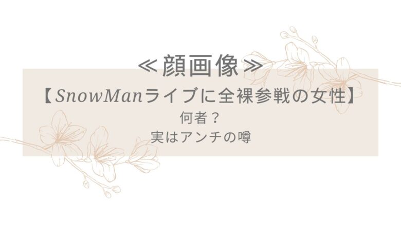 今回は『【顔画像】SnowManライブに全裸参戦の女性は何者?実はアンチの噂』と題して、SnowManライブに全裸参戦した女性は何者なのか、SnowManアンチである噂についても調査してきました。