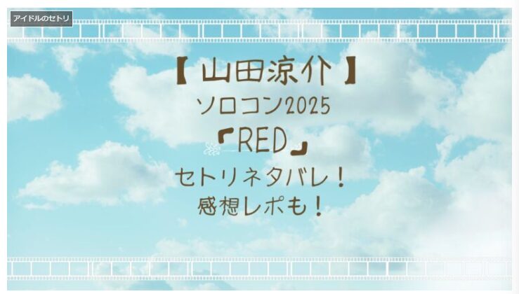 今回は『山田涼介ソロコン2025「RED」セトリネタバレ!感想レポも!』と題して、山田涼介さんのソロコンツアー2025「RED」のセトリ、感想レポをまとめてきました。