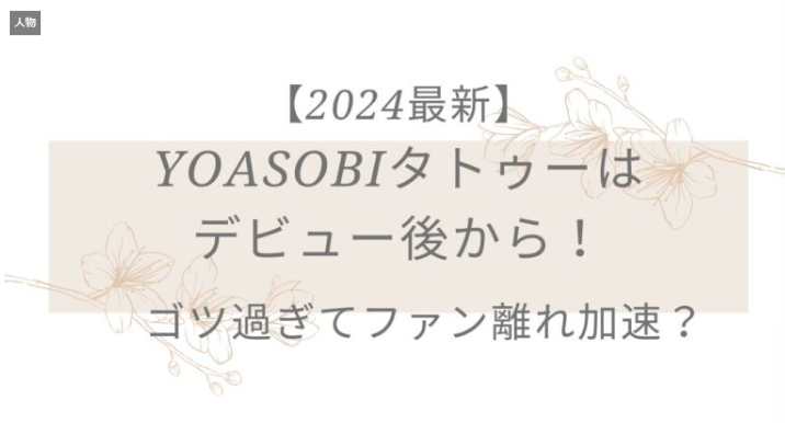 今回は『【2025最新】YOASOBIタトゥーはデビュー後から!ゴツ過ぎてファン離れ加速?』題して、YOASOBI・Ayaseさんのタトゥーがいつからあったのか調査してきました。